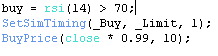 The "SetSimTiming" function allows you to specify an order type to associate with a signal type. Here, we associate limit order type to buy signals. We set "0" in the third parameter to indicate that we want to execute the order tomorrow (signal date + 1).